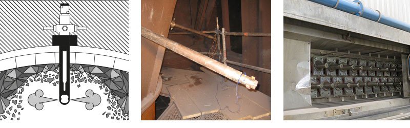 It is suitable for use in furnaces, silos, ash pits, hoppers, tube bundles, metal smelters, economisers and coal bunkers. CO2 is an inert gas so is fire inhibiting, making this method a preferred option for certain types of blockages within coal bunkers. CO2 can also be used in the bunkers, boilers and hoppers of EfW plants. It is faster and safer than manual cleaning or vacuuming and can be used while the plant remains in full operation.